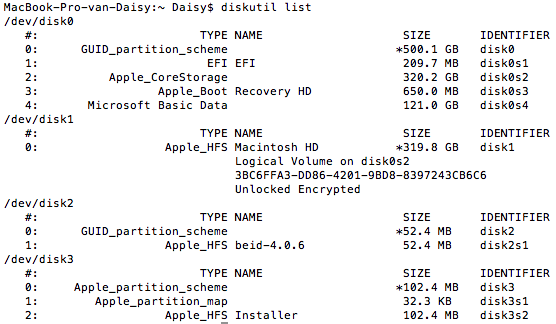diskutil list: