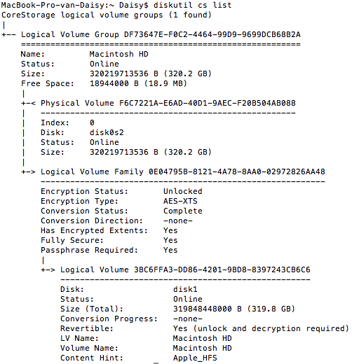 diskutil cs list: