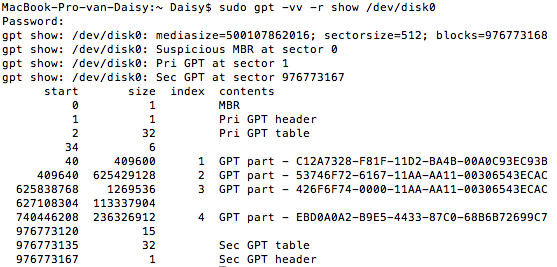 sudo gpt -vv -r show /dev/disk0