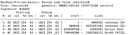 sudo fdisk /dev/disk0