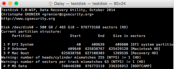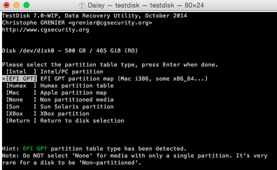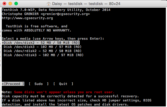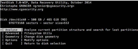 When I open the testdisk application I have to following screen: