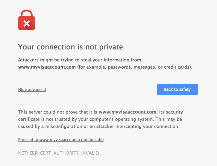 "Your connection is not private" error message