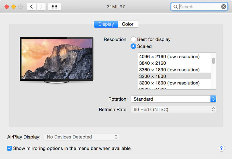 With OS X Mavericks v10.9.3 or later, the following DisplayPort displays are supported at their default using single-stream transport (SST) at 30Hz.