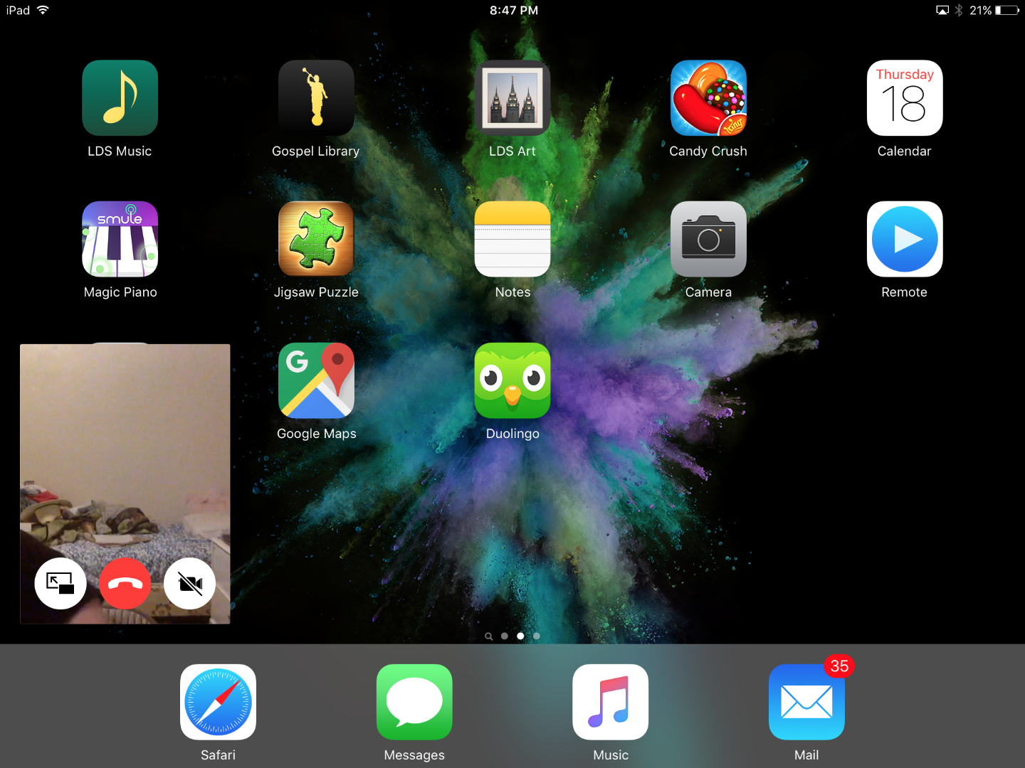 "Then press the home button on the ipad/iphone to temporarily get out of the facetime app but you should still see a video of the person you are facetiming with somewhere on the home screen. "