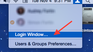 4. Now, go to the "Login Window" (with the method shown on the image below) . IMPORTANT: Do not close your session, only switch to the "Login Window" by keeping your active session in background.