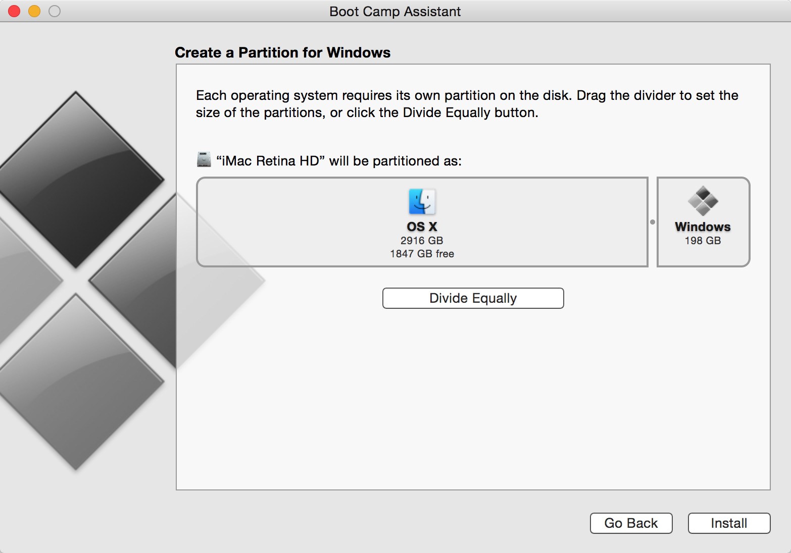 I've got a new iMac Retina with the 3TB Fusion drive on which I wanted to install Win 8.1 using Boot Camp. I have VMWare Fusion installed and running, but figured Boot Camp might be better for my needs.