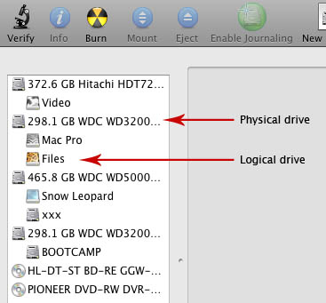 I have multiple hard drives here, you will likely only have one showing. But what you need to do is click on the physical drive name. That will allow you to partition the drive. Click on the Partition tab at the right to get this screen: