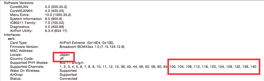 However a less common possibility would be if someone was using the MacBook as a software base-station e.g. via Internet Sharing. This means potentially a foreign model could advertise a channel not strictly allowed in a country.