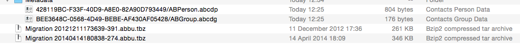 1. The content of the Metadata folder is not transferred properly when migrating to Yosemite. All contacts were gone from the first boot of the system.