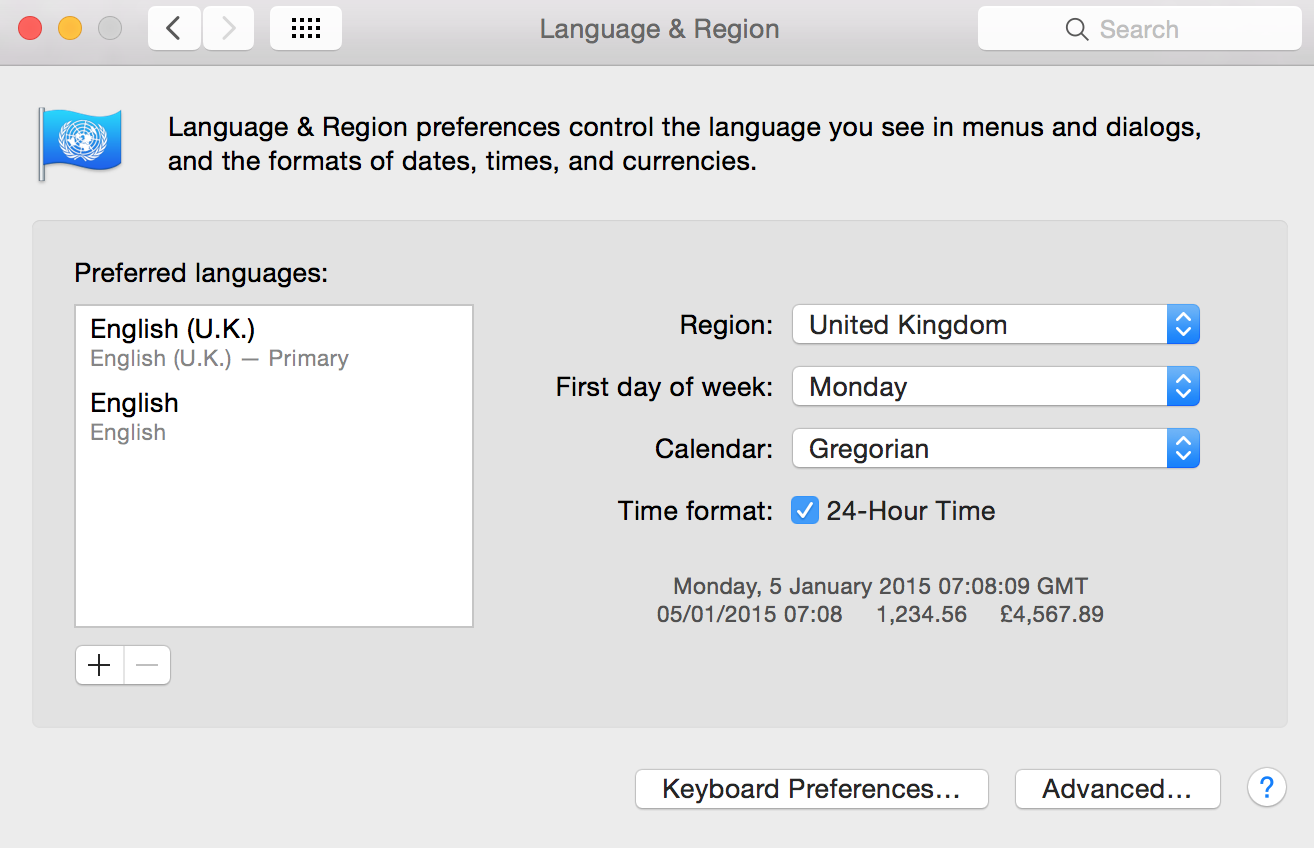 I had this problem too. I resolved it by going into System Preferences > Language & Region and making sure the primary language was "English (U.K.)" under primary languages (i.e. at the top of the list of preferred languages).