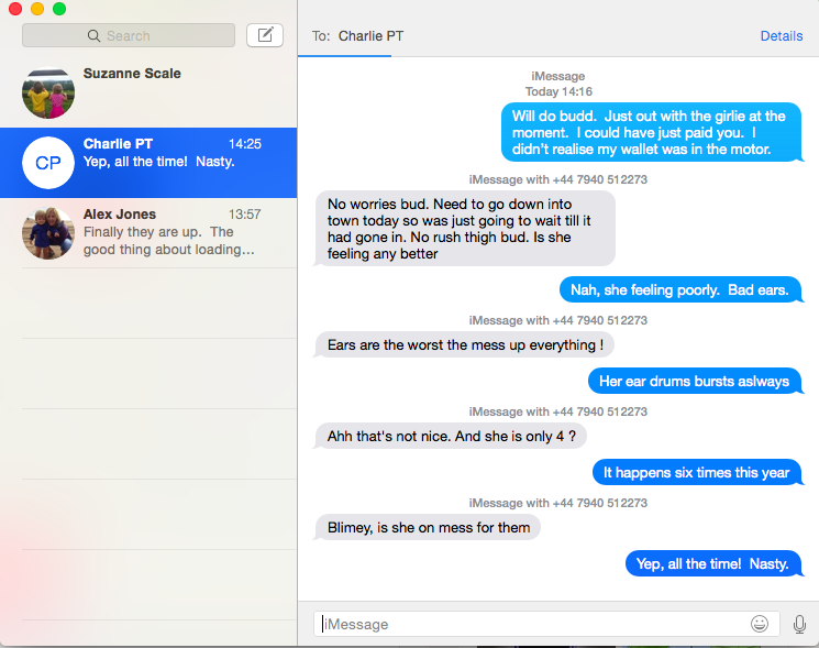 Do you have any other Chats/conversations listed in the main window of Messages Side Bar ?