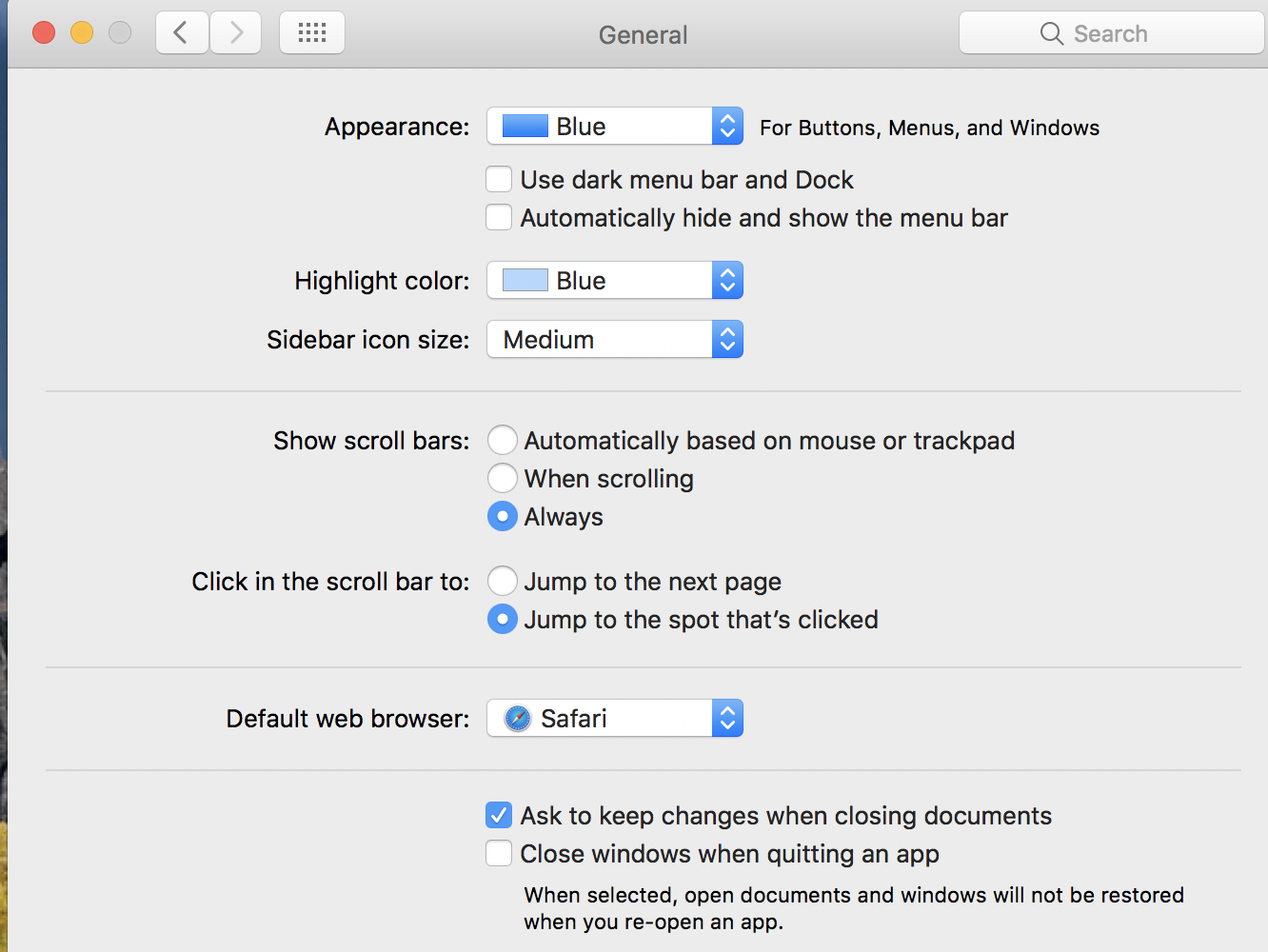 And yes, the OS option of autosaving without permission is an old issue... yet every other option in General Preferences matched my old system after the migration was finally complete... just not the one issue of autosave. The old system (also 10.12.3) did not operate that way. The assumption is that when an Apple rep tells you that Migration will cause the new machine to mirror the old, well... no, it didn't mirror the old setup. thus the problem of Autosave and missing templates...