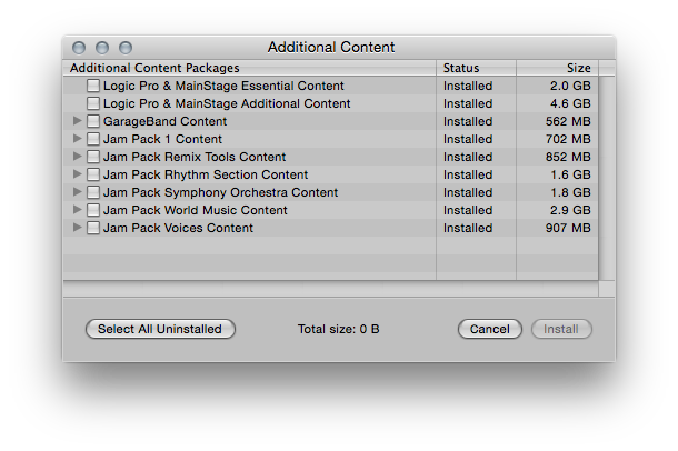 Jam Pack 1, Jam Pack Remix Tools, Jam Pack Rhythm Section, Jam Pack Symphony Orchestra, Jam Pack Voices, Jam Pack World Music.