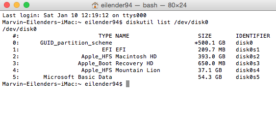 michael-tyos-MacBook-Air:~ michaeltyo$ sudo fdisk /dev/disk0