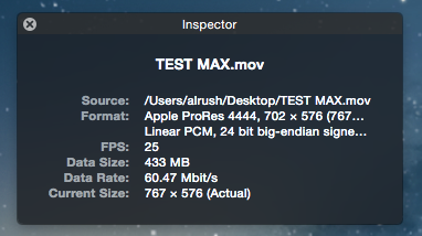 Results from QuickTime X 10.4 on HIGH quality setting: