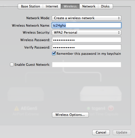 All of this is clear when you click the TC in the airport utility and go to edit.