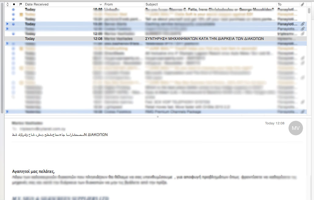 The fonts in the subject were capital greek in both messages.