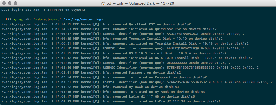 zgrep -Ei 'usbmsc|mount' /var/log/system.log*