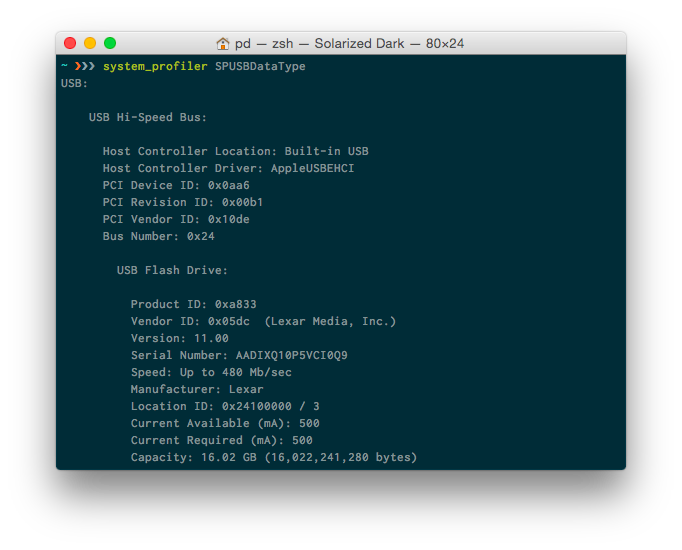 “USBMSC” is a useful keyword when parsing strings to locate the identity of USB devices. “USBMSC” stands for Universal Serial Bus Mass Storage Class. You can watch the system.log stream either in the Console app or from a Terminal app window with the tail utility. In a Terminal shell, type the following and press the Return key: