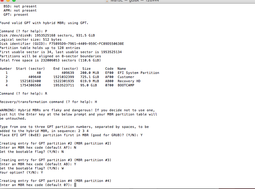 Final checks complete. About to write GPT data. THIS WILL OVERWRITE EXISTING