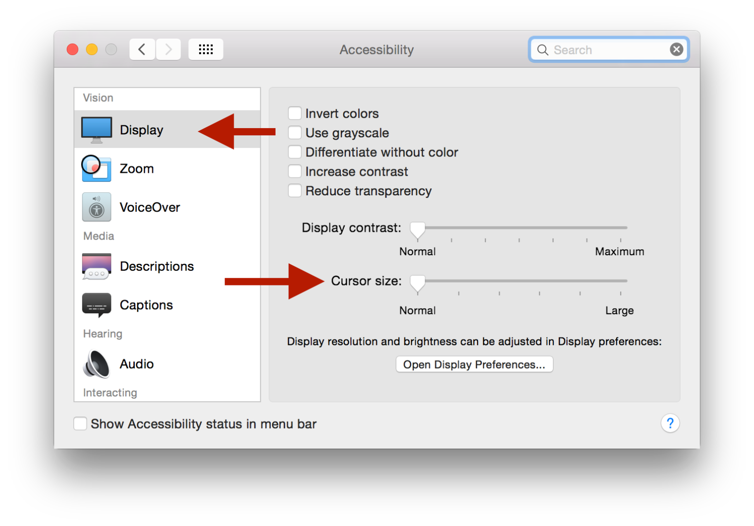 I just finished migrating my and my wife's accounts from our old iMac to our brand new Retina 5K, with Yosemite, of course. My account is fine but my wife's cursor has a strange problem - which MAY have been present before I migrated, I'm not sure: