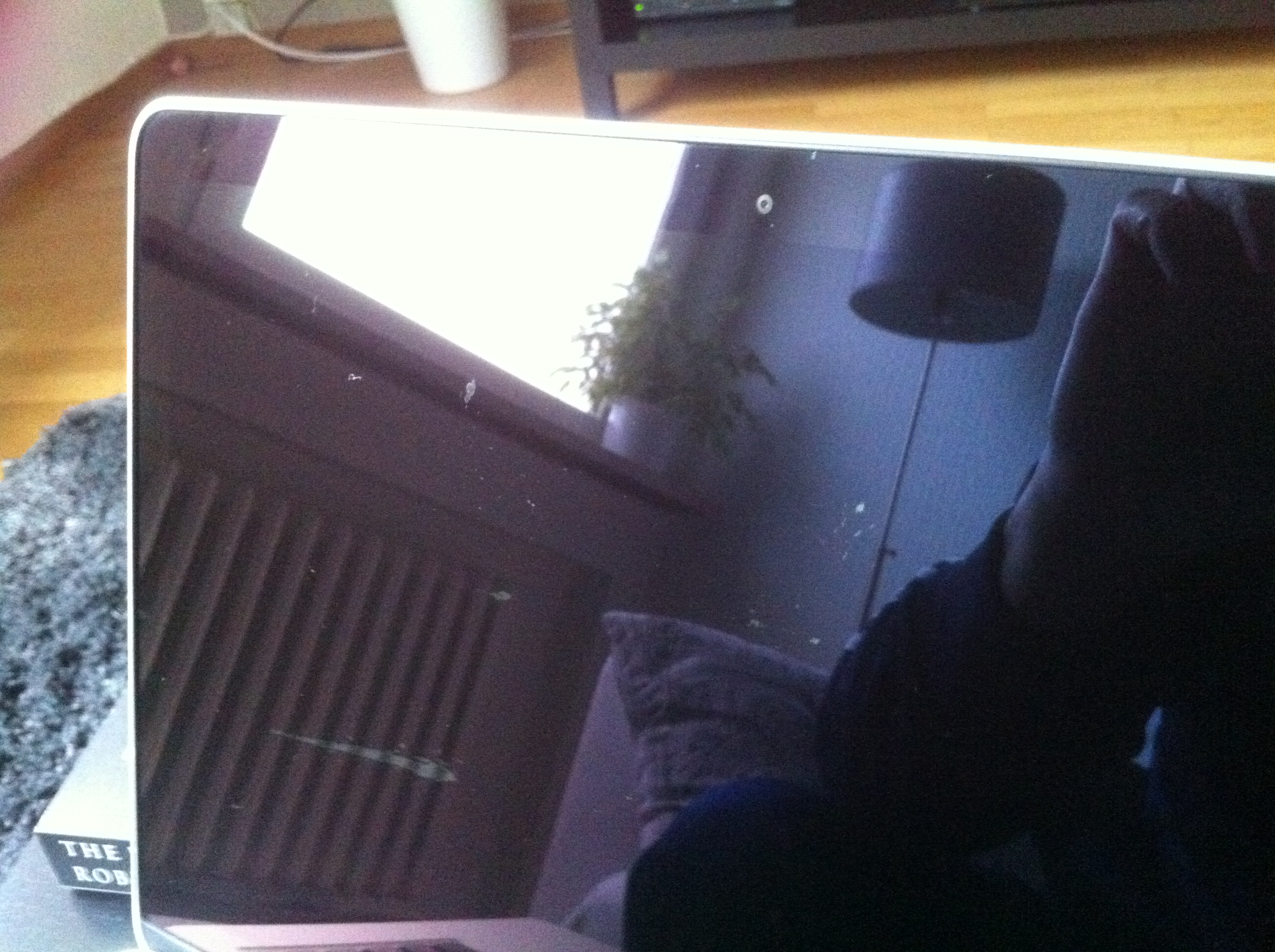 I noticed this a few months ago, while I was cleaning my Macbook Pro Retina screen. I wanted to get what looked like some dirt from the screen, but it got bigger and bigger the more I tried. I then learned that it's not dirt, but it's the screen anti-glare coating coming off. Anyway, I thought it was my fault, maybe I wasn't cleaning the screen as I should. I always used a slightly wet microfibre cloth.
