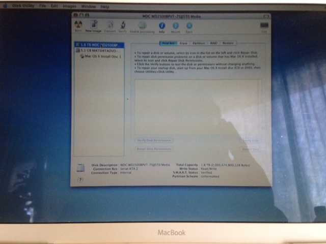 MacBook, Mac OS X (10.6.3), New HD installed 2 years ago