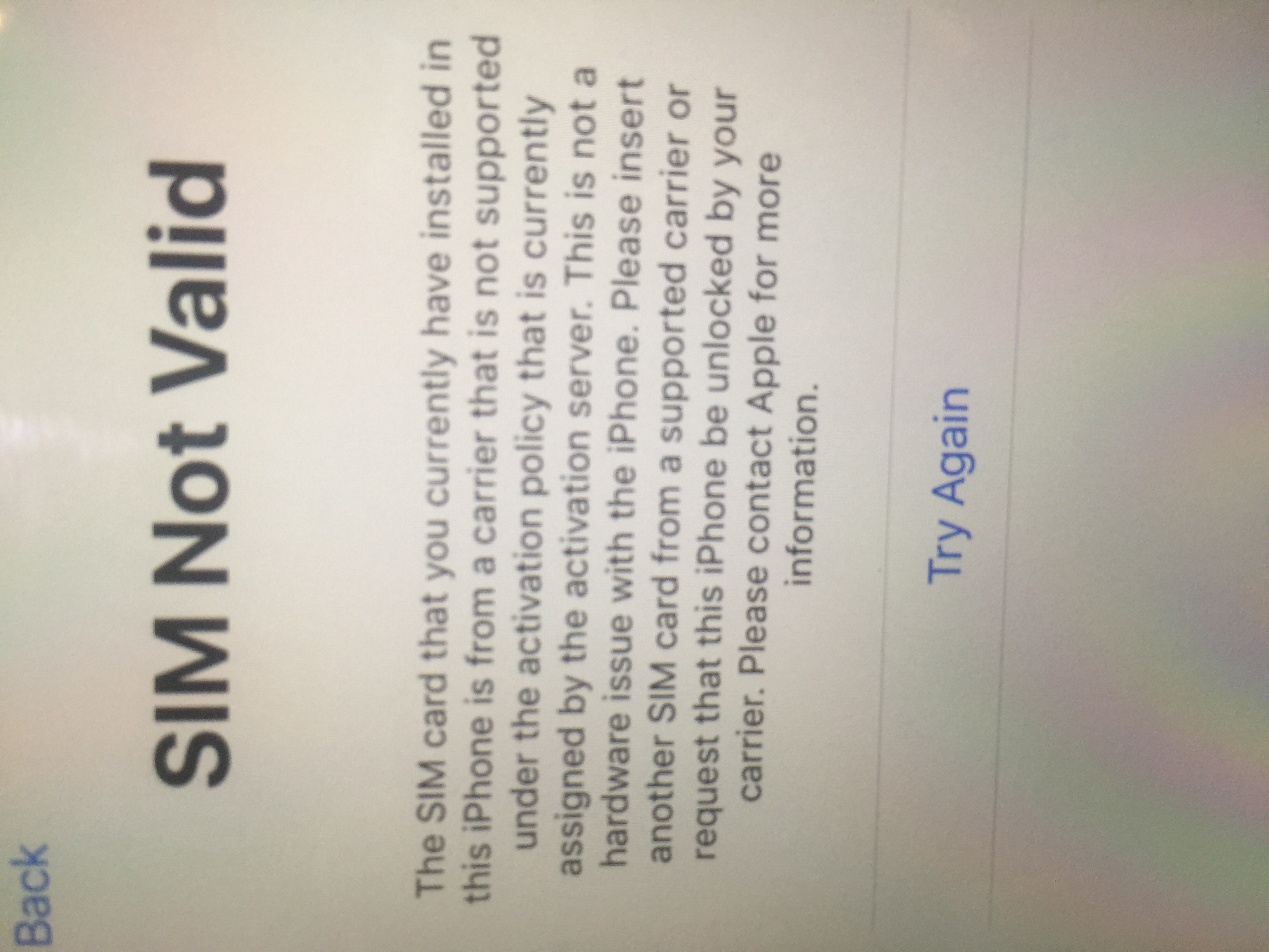 ''Sim Not Valid'' on activation screen! *PLEASE HELP*