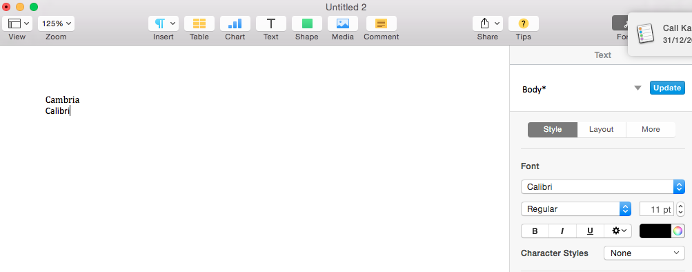 I just bought a new Laptop Pro and work in Pages, but found that some fonts have been removed, especially cambria and calibria. What can be done?