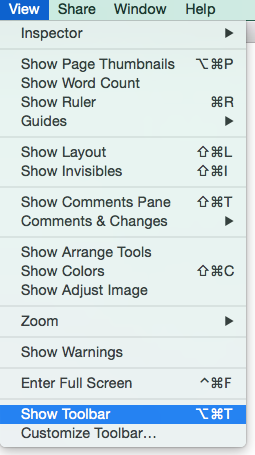 I seem to be missing the toolbar in Pages in the header space. I have some controls to the right. But the usual formate is gone. Anyone know what to do?