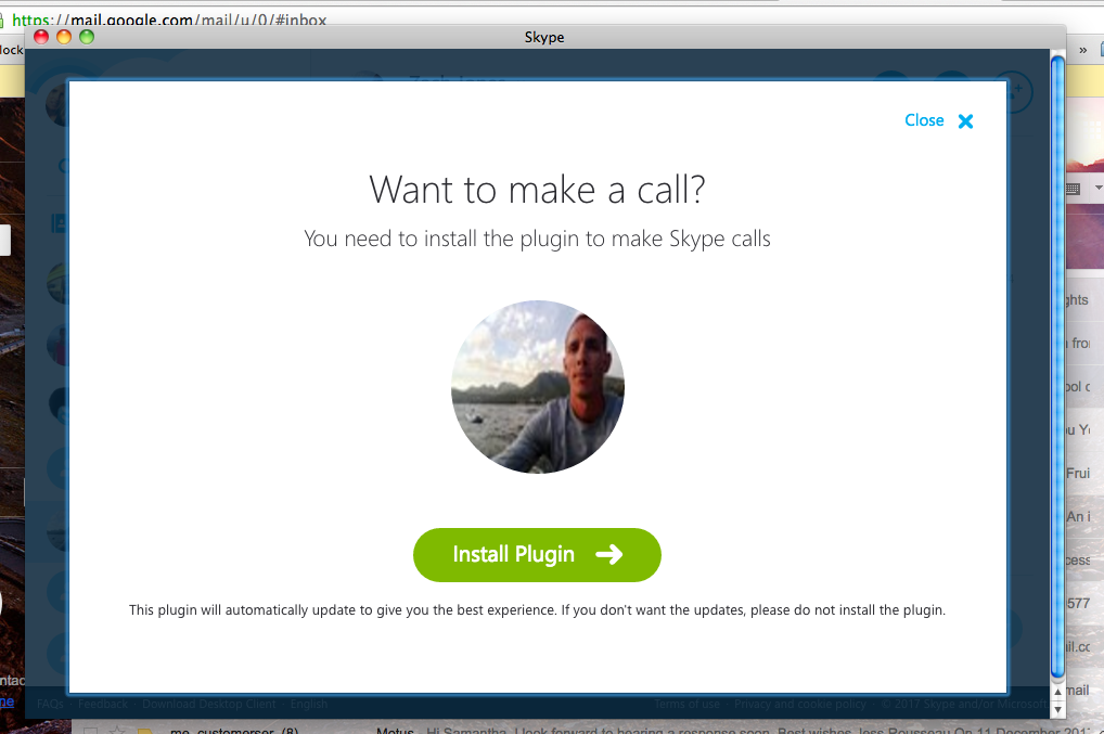 The request for installing the plug-in comes when I click on a contact to call them. I can text message them with no problems. This is what it comes up with: