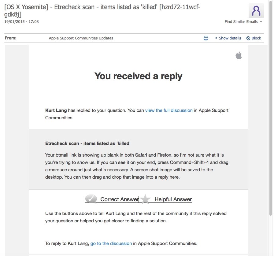 Etrecheck scan - items listed as 'killed'