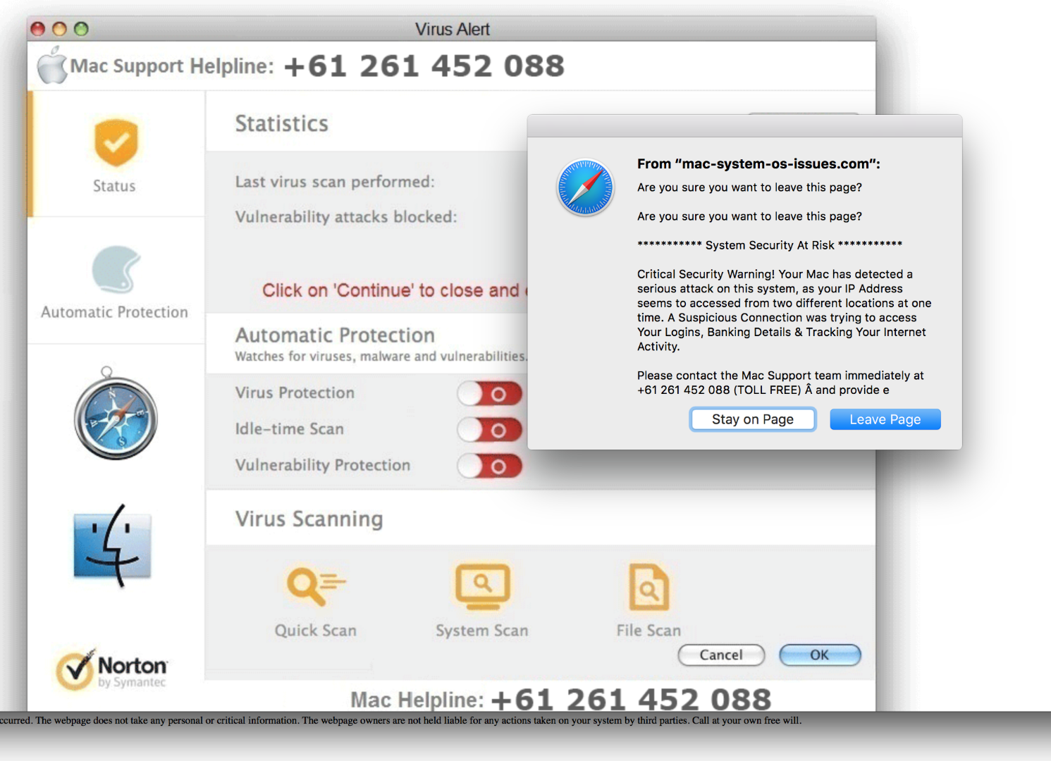 Critical Security Warning! Your Mac is infected with a malicious virus attack.