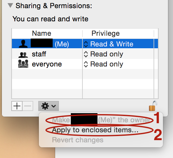 I am trying to copy files from my Mac Pro OS10.6 to my MacBook Pro OS10.10. It took awhile to get access to the Mac Pro, but when I copy folders over, they are locked. I can change the permissions with command-info, but that is tedious.