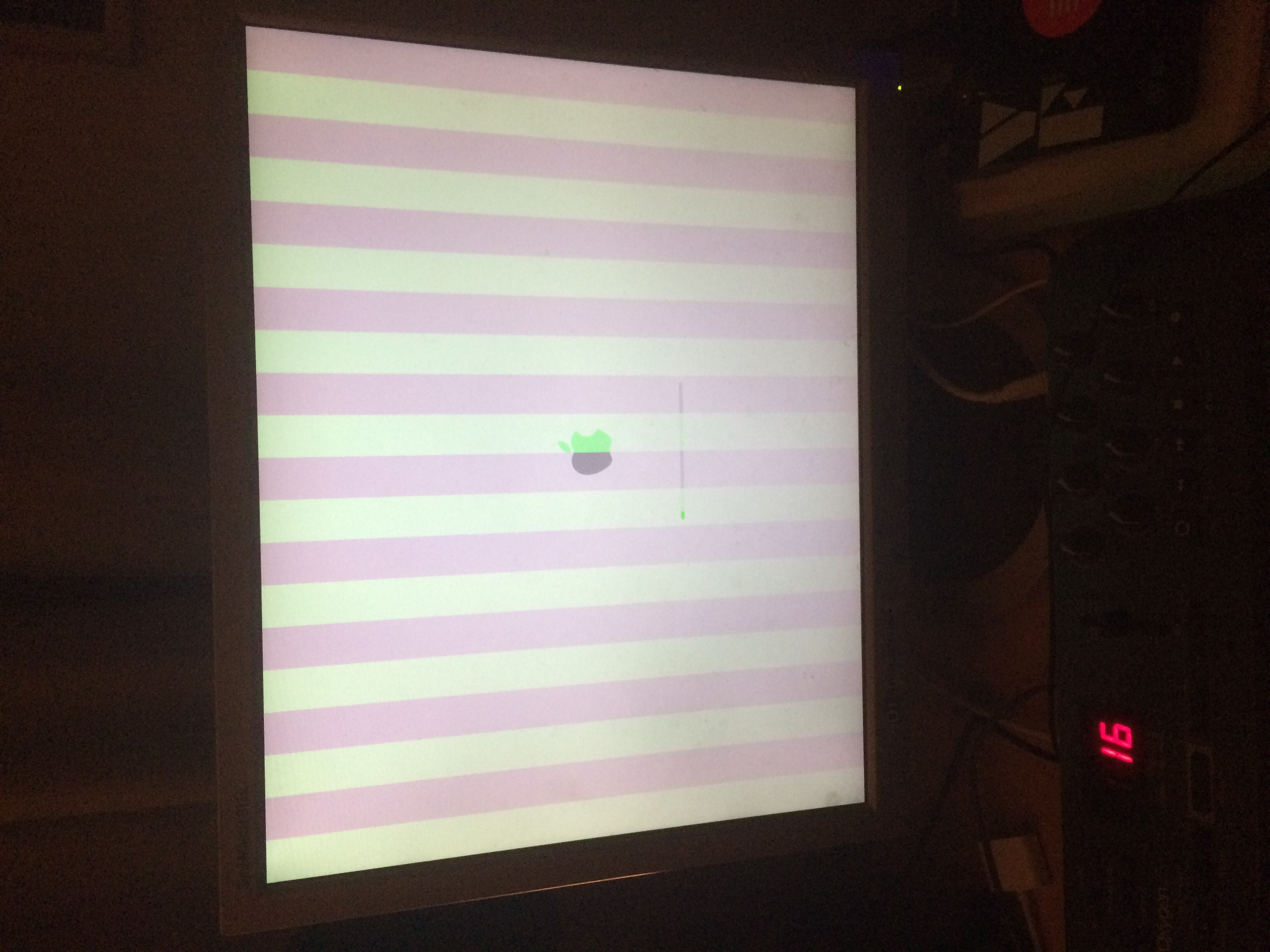 After about a minute my Mac restarted itself and on the startup screen displayed thick vertical purple and green lines.
