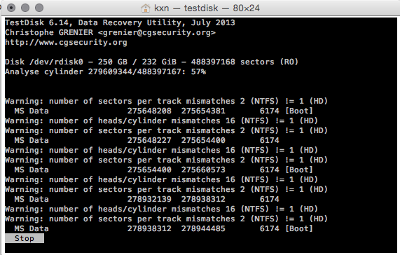 Disk: /dev/disk2 geometry: 97190/255/63 [1561371488 sectors]