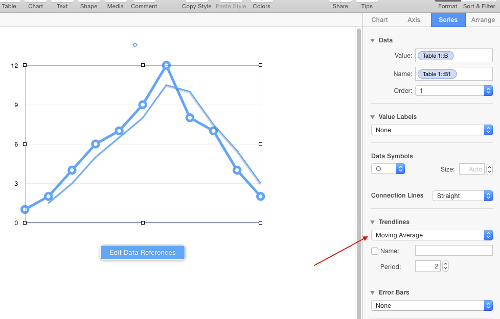 I need an option to tell Numbers to do the Moving Average calculation from the bottom of the table up, not from the top of the table down.