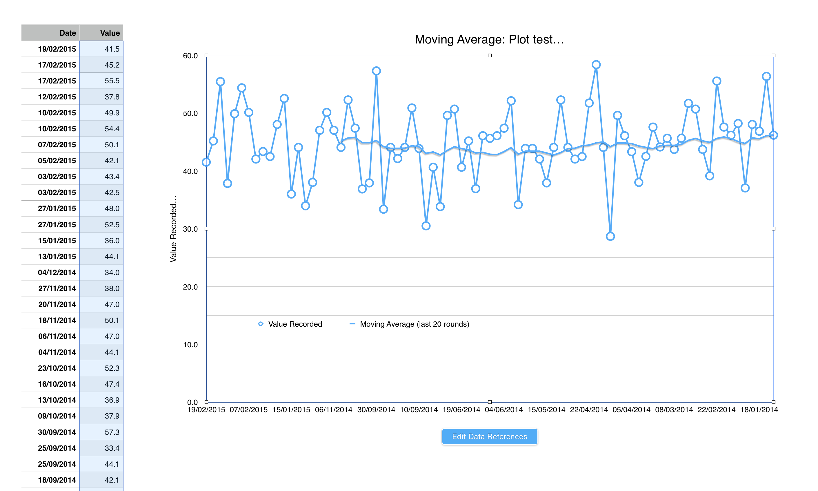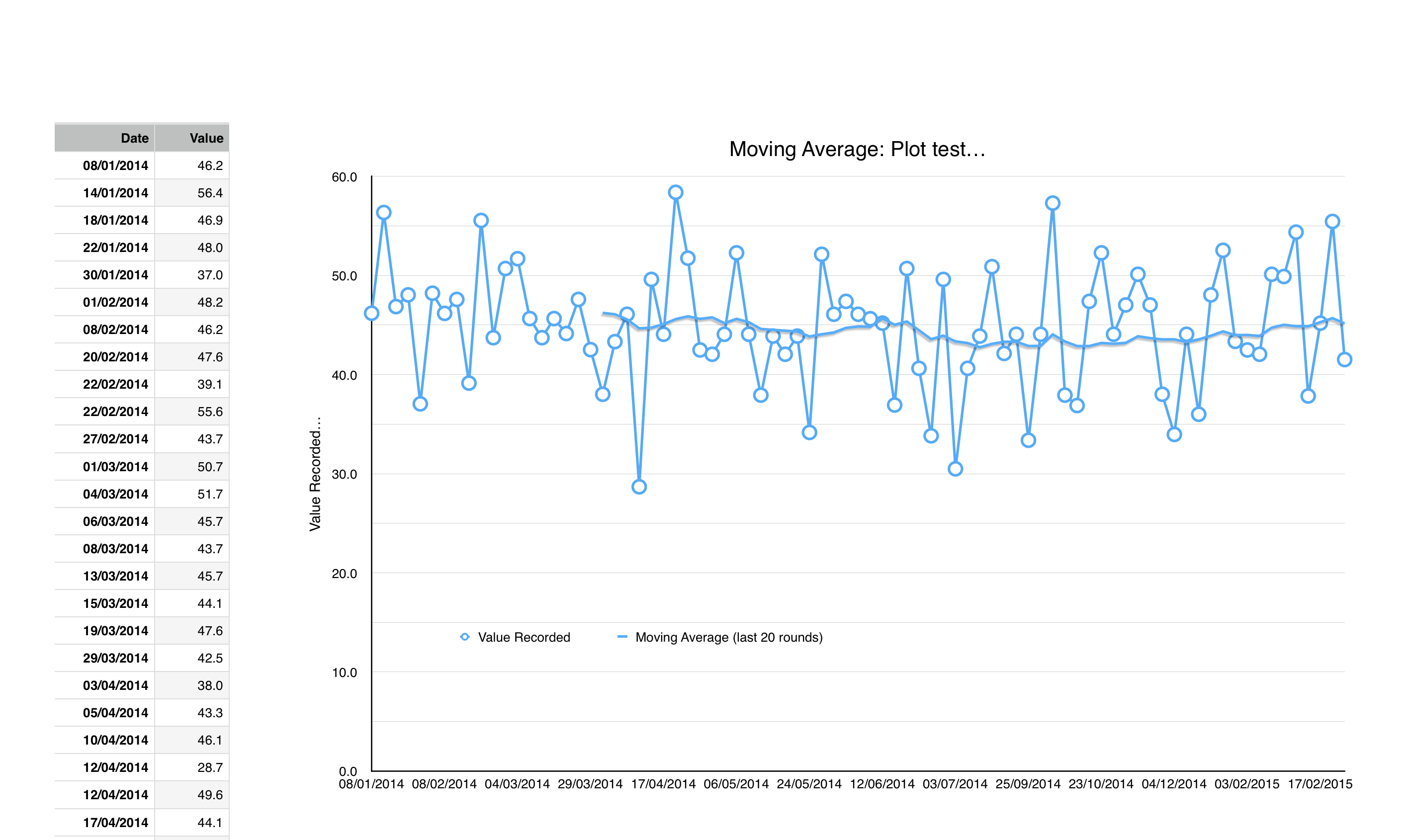 What I want to see is my table displayed from most recent at the top (the top table), and moving average calculated and displayed as per the bottom graph.