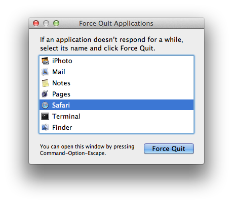1. Force quit Safari by holding these three keys simultaneously: option command escape
