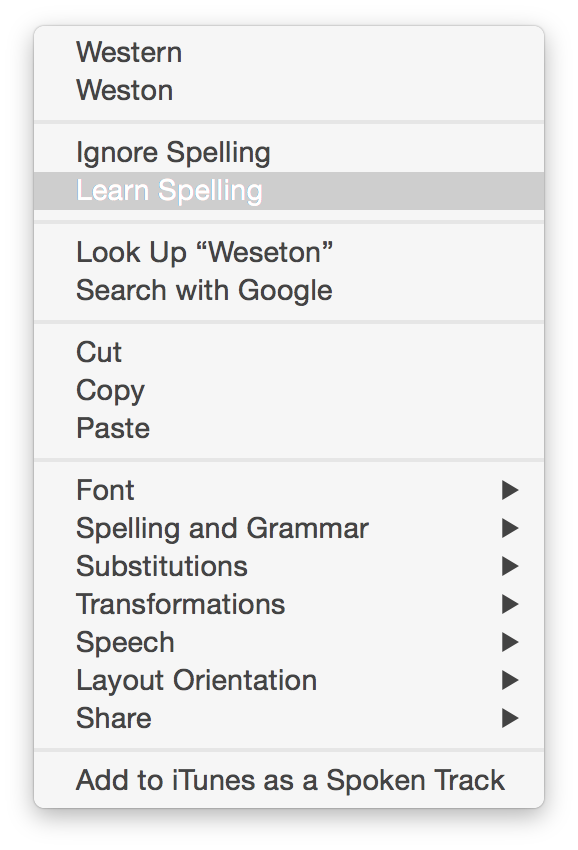 Macintosh HD > Users > Your User Name ( Example westongallagher ) > Library ( Hidden Folder ) > Spelling >