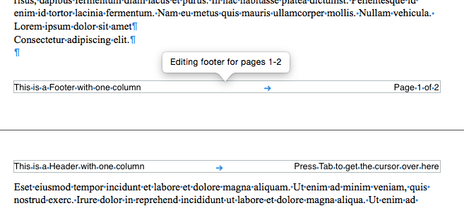 The same thing happened on the new document. The column settings for the footer stopped responding.