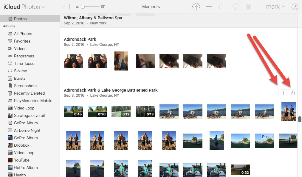 How do you select multiple photos in iCloud?