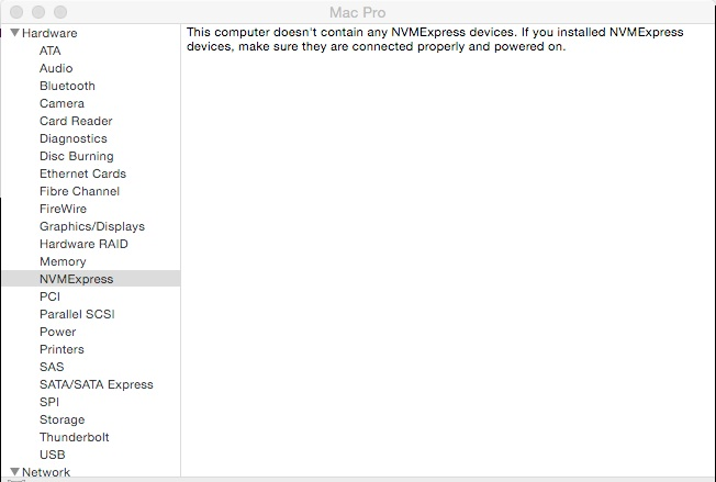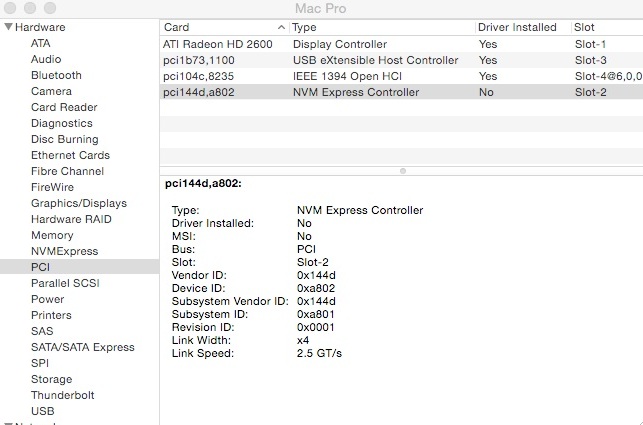 The problem is that my mac is not seeing the SSD I get these msg's in pcie (About This Mac) "There was an error while gathering PCI card information".