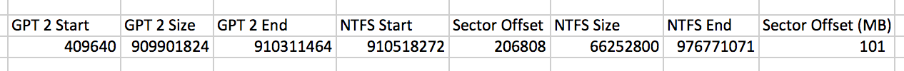 gpt show: /dev/disk0: Sec GPT at sector 976773167