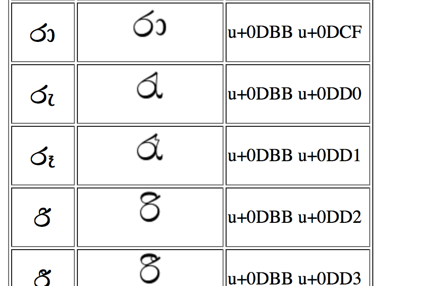 u+0DBB u+0DD0 or u+0DBB u+0DD1 or u+0DBB u+0DD1