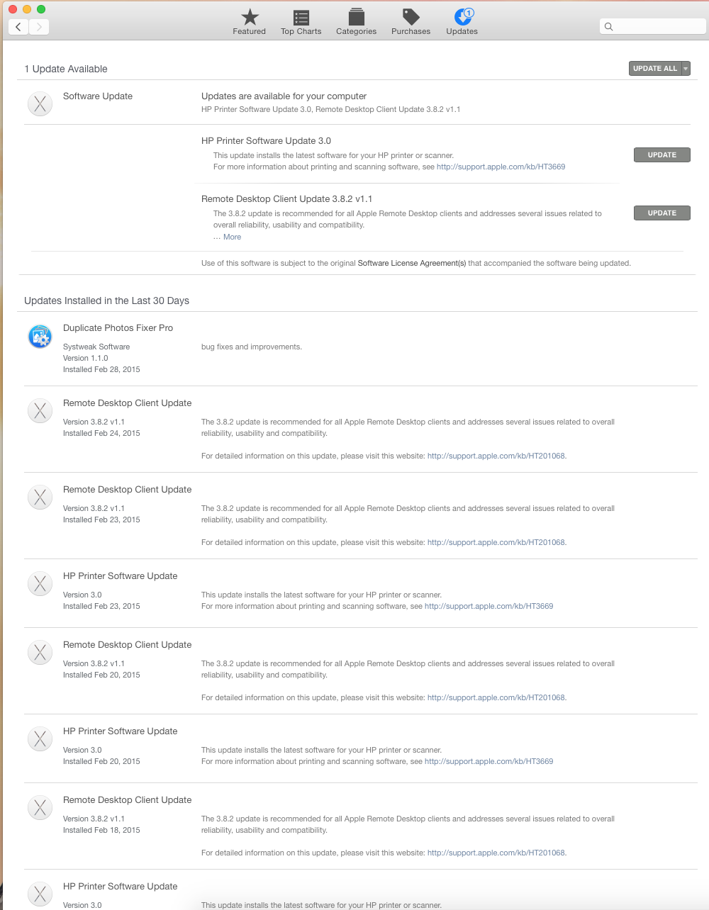 I've tried to do that again with no success now my App Store Updates Screen looks like this.