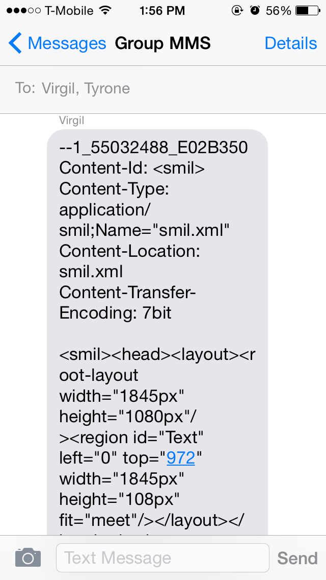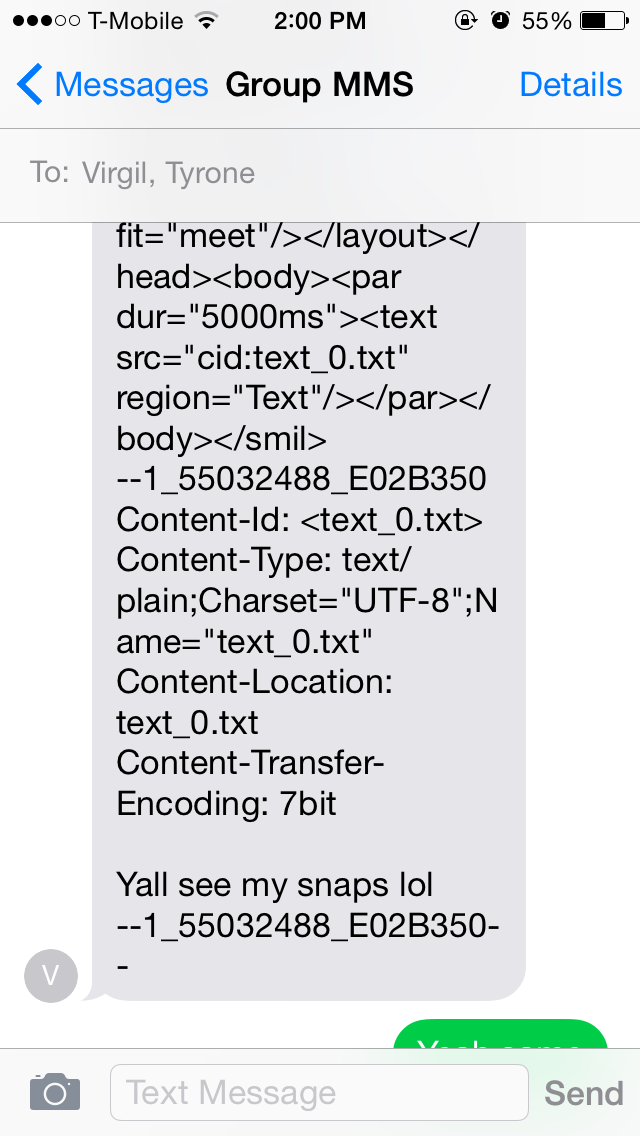 ok so i got a non iMessage group message. I clicked it and this appeared along with the message its some type of coding i guess. please help what do i do. do i have a virus or something?User uploaded file