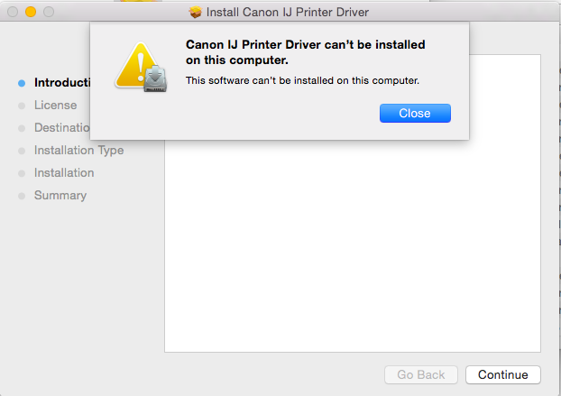 Hi guys! This is my first time using a MacBook Air and I got it in January this year. Initially, I managed to somehow get my wireless printer to be connected to my Mac (but I cannot remember the method I did). I was able to use it normally till February. After about 3 weeks of not printing anything, my Mac can no longer detect my printer. It's really frustrating! I downloaded the correct driver from the Canon website but it always fails to install! It always shows this: