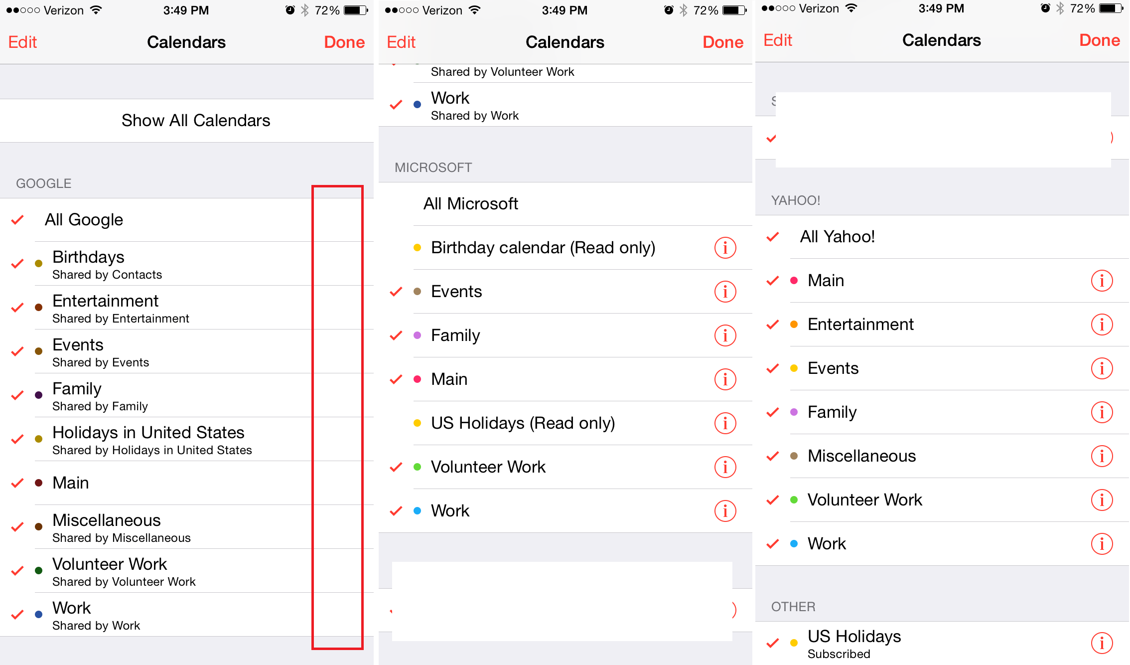Additionally, in iOS 8 Apple allows me to change the colors of calendars from Yahoo and Microsoft Outlook. They only prohibit changing the calendar colors with Google.