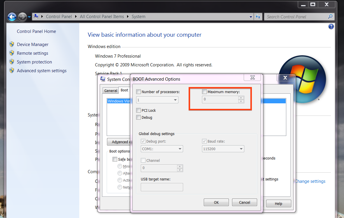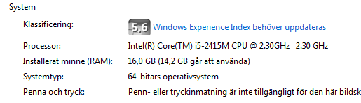 I started windows with my old 4GB memory and changed the bootconfiguration with msconfig. I typed manually in max memory tp 16384 MB and saved the settings. Then I turned it off and inserted the 16GB ram again. Then it started really but when looking at the properties of my computer it says 16 GB installed but I can only use 2,16GB. So I opened msconfig again and changed the settings once more and restarted. Now it says 16GB installed but I can use 14,2GB so I guess it is ok now for some strange reason. I suppose the lost 1,8GB is for the system ?? Do I dare to turn it off again :-) what will it say next time ?